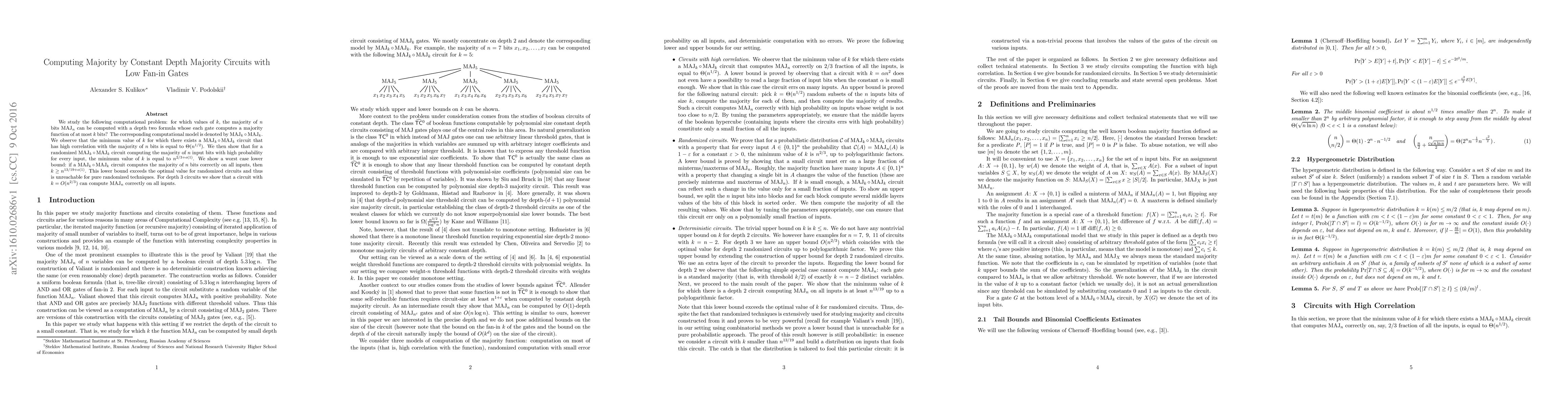 This paper investigates the computational problem of computing the majority function $\text{MAJ}_n$ using depth two circuits with low fan-in gates, specifically $\text{MAJ}_k \circ \text{MAJ}_k$. It finds that the minimum $k$ required for high correlation with $\text{MAJ}_n$ is $\Theta(n^{1/2})$, and for randomized circuits, it is $n^{2/3+o(1)}$. A worst-case lower bound of $k\geq n^{13/19+o(1)}$ is also established, which is unattainable for randomized techniques. For depth $3$ circuits, a circuit with $k=O(n^{2/3})$ can compute $\text{MAJ}_n$ correctly on all inputs.