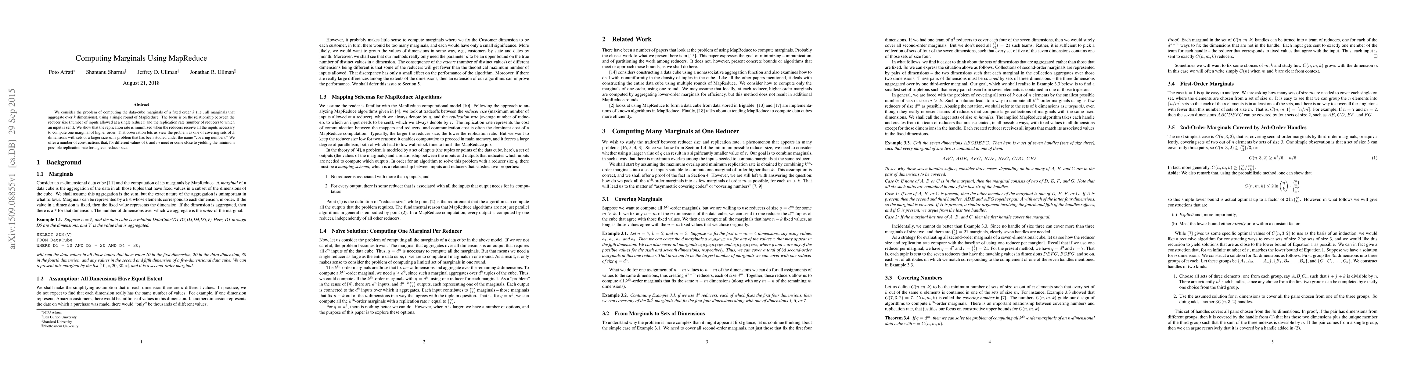 This paper optimizes data-cube marginals computation using MapReduce by minimizing replication rate based on reducer size and covering sets of dimensions. It provides constructions for achieving the minimum possible replication rate for a given reducer size.