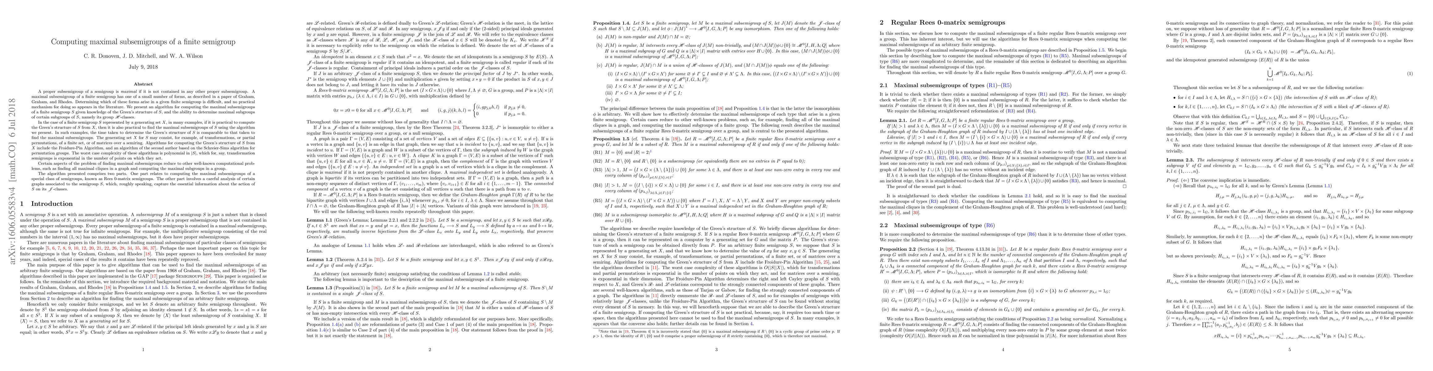 This paper presents an algorithm to compute maximal subsemigroups of a finite semigroup based on its Green's structure and the determination of maximal subgroups. The algorithm effectively reduces the problem to well-known computational tasks like finding maximal cliques and maximal subgroups.