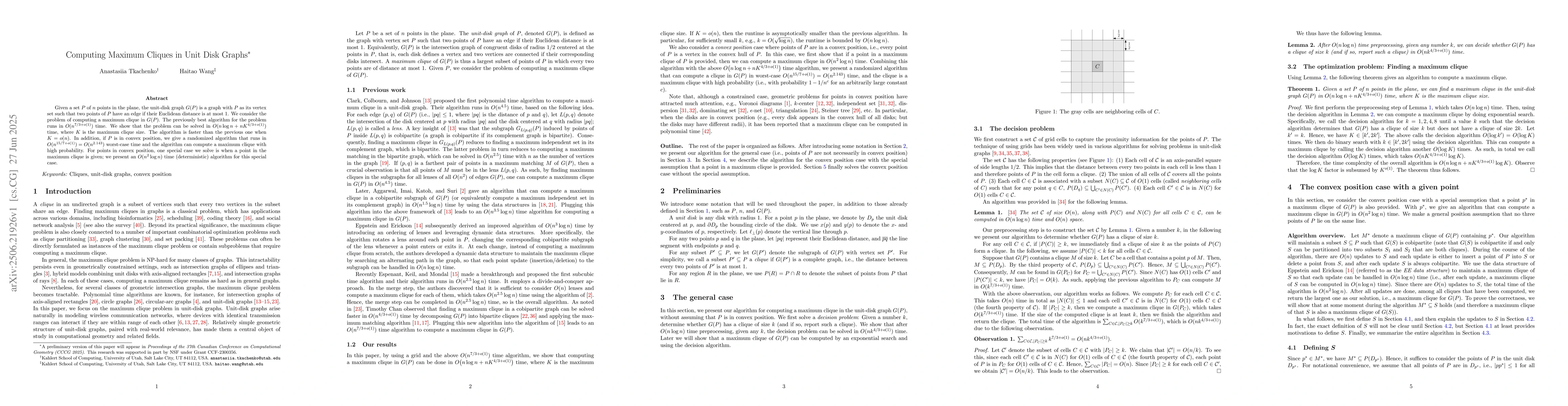Given a set $P$ of $n$ points in the plane, the unit-disk graph $G(P)$ is a graph with $P$ as its vertex set such that two points of $P$ have an edge if their Euclidean distance is at most $1$. We consider the problem of computing a maximum clique in $G(P)$. The previously best algorithm for the problem runs in $O(n^{7/3+o(1)})$ time. We show that the problem can be solved in $O(n \log n + n K^{4/3+o(1)})$ time, where $K$ is the maximum clique size. The algorithm is faster than the previous one when $K=o(n)$. In addition, if $P$ is in convex position, we give a randomized algorithm that runs in $O(n^{15/7+o(1)})= O(n^{2.143})$ worst-case time and the algorithm can compute a maximum clique with high probability. For points in convex position, one special case we solve is when a point in the maximum clique is given; we present an $O(n^2\log n)$ time (deterministic) algorithm for this special case.