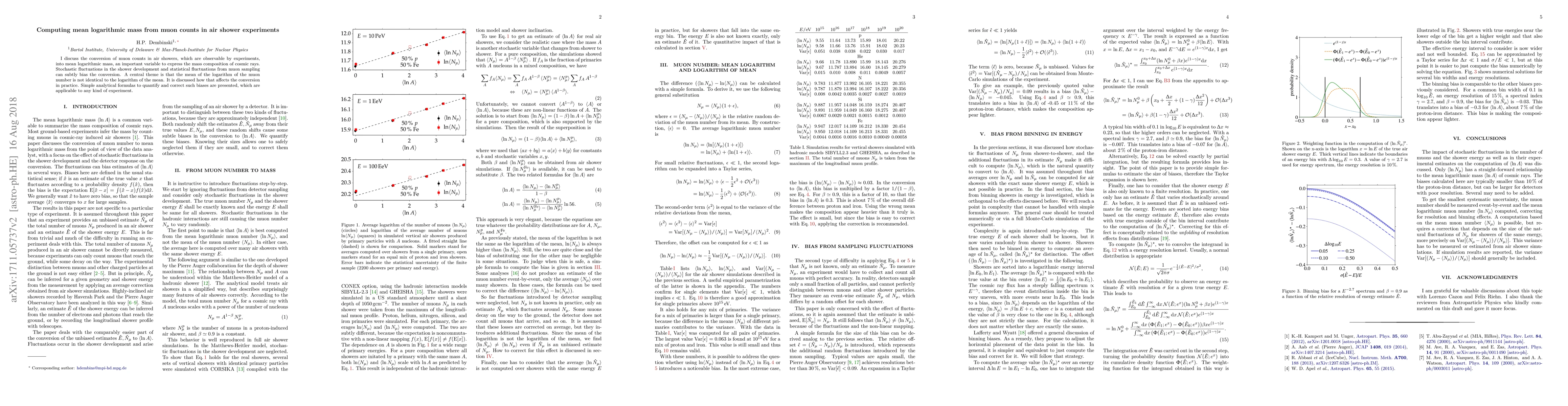 Researchers developed a method to convert muon counts in air shower experiments into mean logarithmic mass, addressing subtle biases due to stochastic fluctuations and statistical sampling errors.