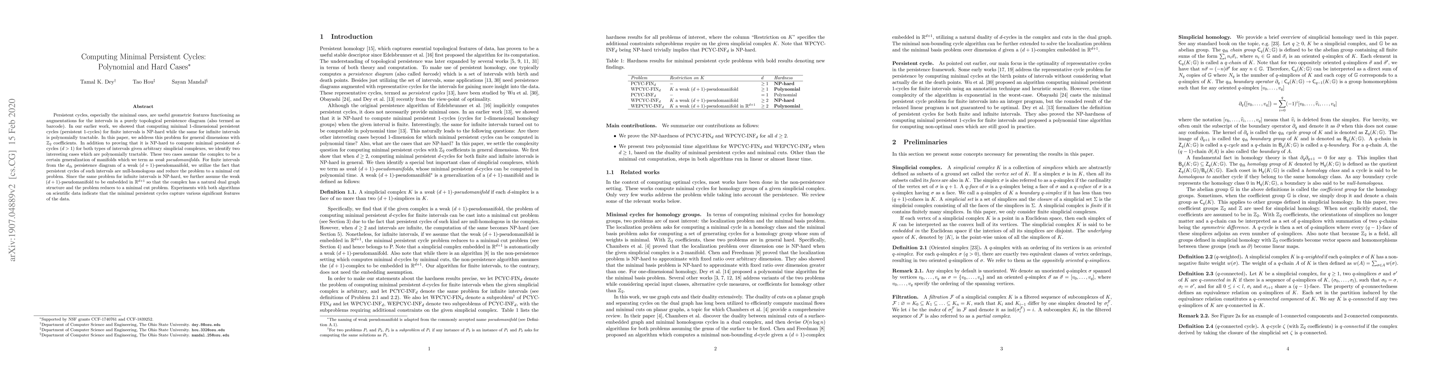 This paper investigates the computational complexity of finding minimal persistent cycles in topological data analysis, proving NP-hardness for general dimensions beyond 1 across both finite and infinite intervals. It identifies polynomially tractable cases when the simplicial complex is a weak pseudomanifold, leveraging null-homologous properties and minimal cut problems for finite intervals.