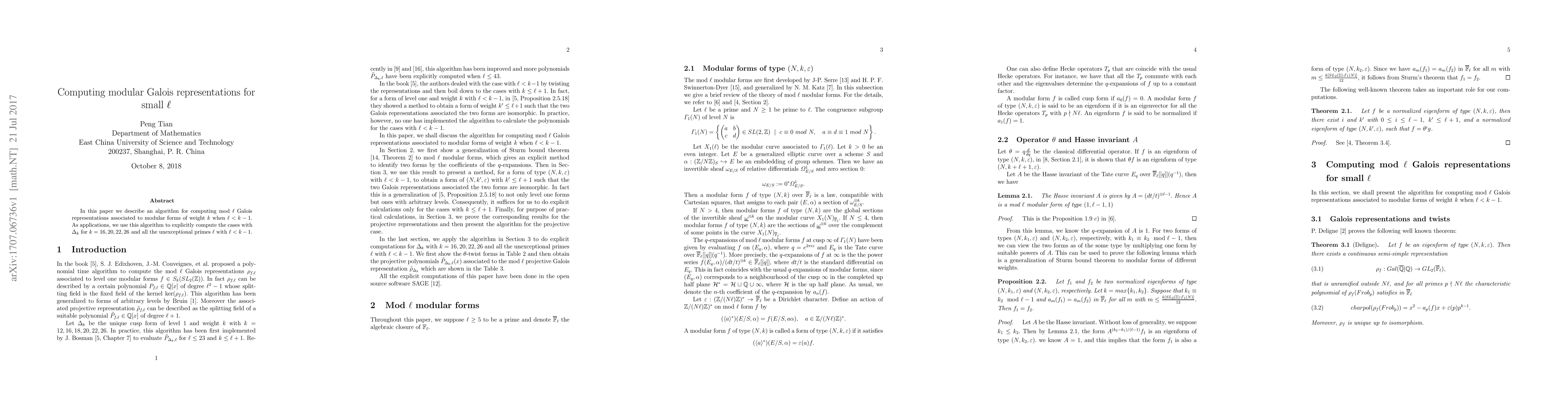 In this paper we describe an algorithm for computing mod $\ell$ Galois