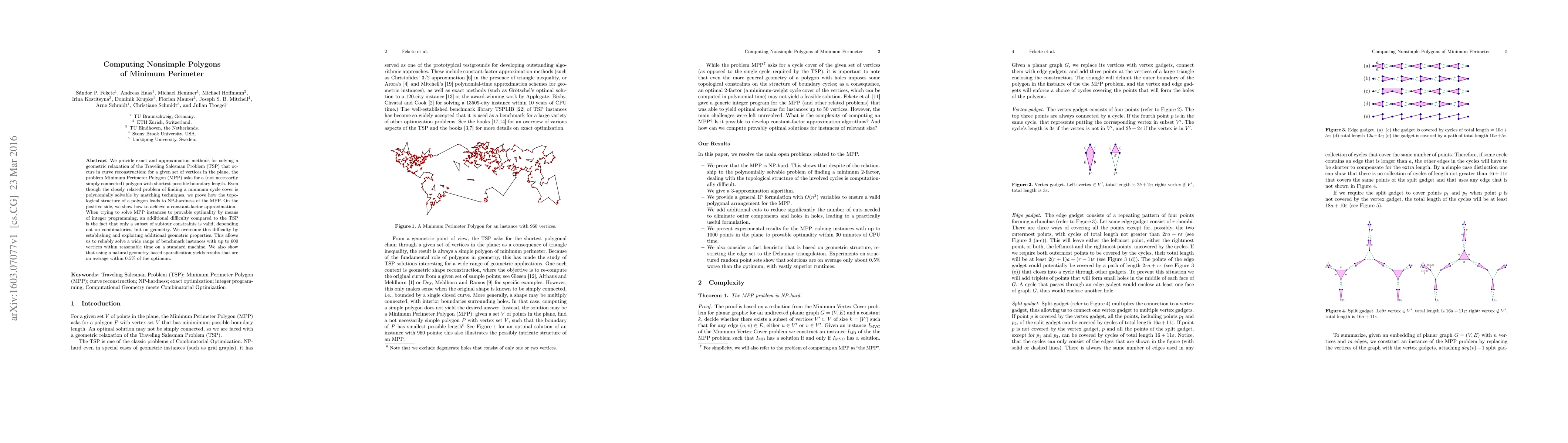 Researchers develop methods to solve the Minimum Perimeter Polygon problem, a geometric version of the Traveling Salesman Problem, with exact and approximation algorithms that achieve constant-factor approximations for large inputs.