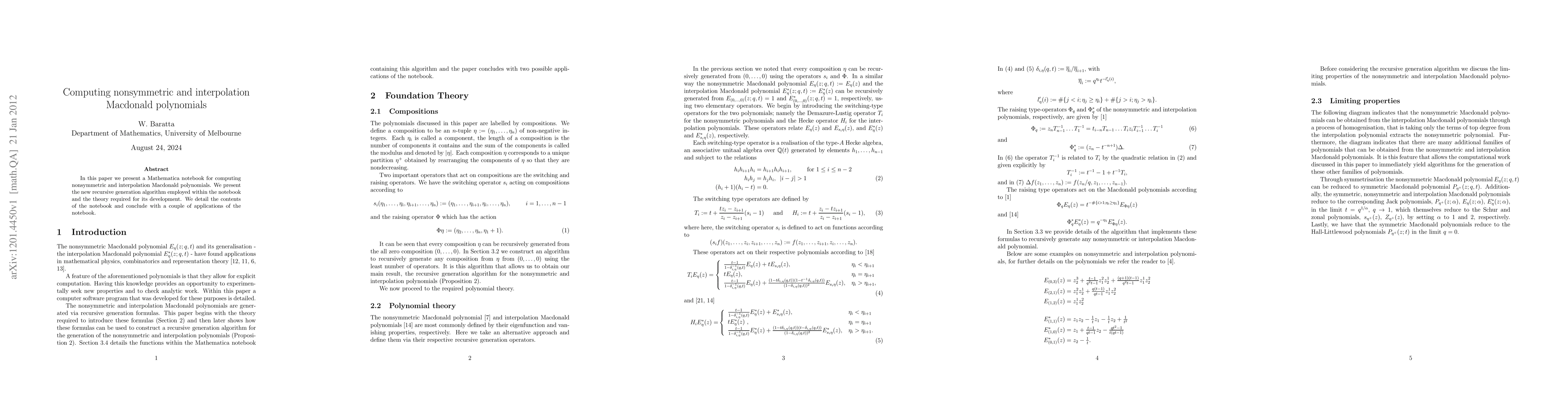 This paper introduces a Mathematica notebook for calculating nonsymmetric and interpolation Macdonald polynomials, detailing a novel recursive generation algorithm and the theoretical underpinnings. It also showcases applications of the developed computational tool.