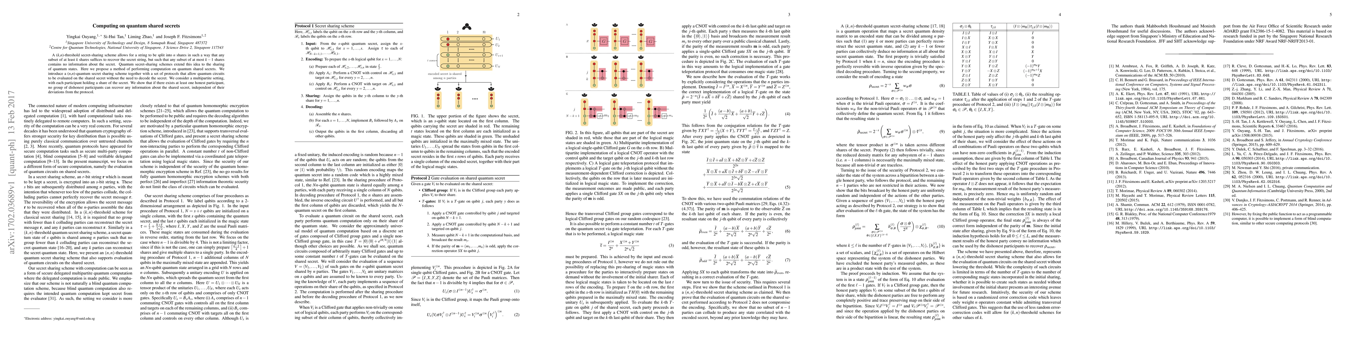 A (k,n)-threshold secret-sharing scheme allows for a string to be split into n shares in such a way that any subset of at least k shares suffices to recover the secret string, but such that any subset of at most k-1 shares contains no information about the secret. Quantum secret-sharing schemes extend this idea to the sharing of quantum states. Here we propose a method of performing computation on quantum shared secrets. We introduce a (n,n)-quantum secret sharing scheme together with a set of protocols that allow quantum circuits to be evaluated on the shared secret without the need to decode the secret. We consider a multipartite setting, with each participant holding a share of the secret. We show that if there exists at least one honest participant, no group of dishonest participants can recover any information about the shared secret, independent of their deviations from the protocol.