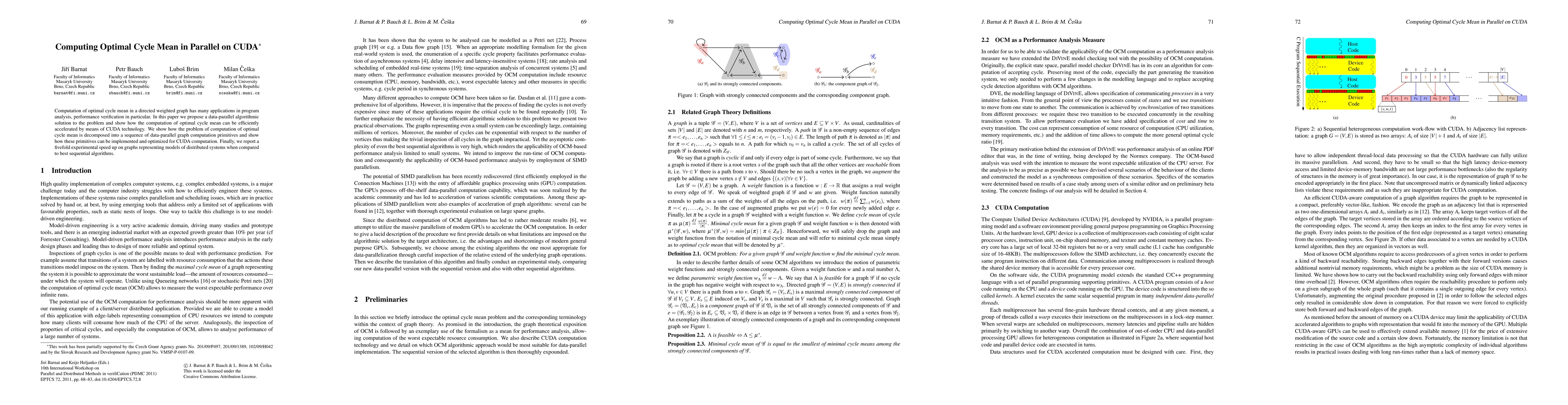 This paper proposes a data-parallel algorithm using CUDA to compute the optimal cycle mean in directed weighted graphs, achieving a fivefold speedup over sequential algorithms by decomposing the problem into parallel graph computation primitives. Experimental results demonstrate significant performance improvements for models of distributed systems.