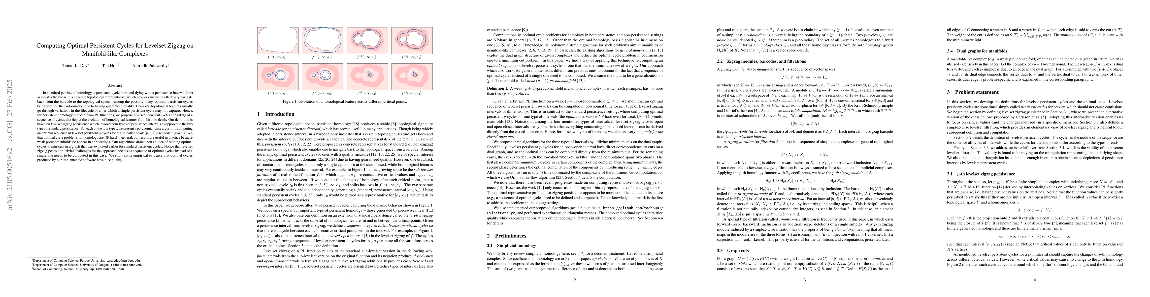 This paper proposes levelset persistent cycles for capturing the evolution of homological features over time in persistent homology, using levelset zigzag persistence. It presents polynomial-time algorithms to compute optimal sequences of levelset persistent $p$-cycles for weak $(p+1)$-pseudomanifolds, leveraging min-cuts in graph theory to solve the NP-hard optimal cycle problem.