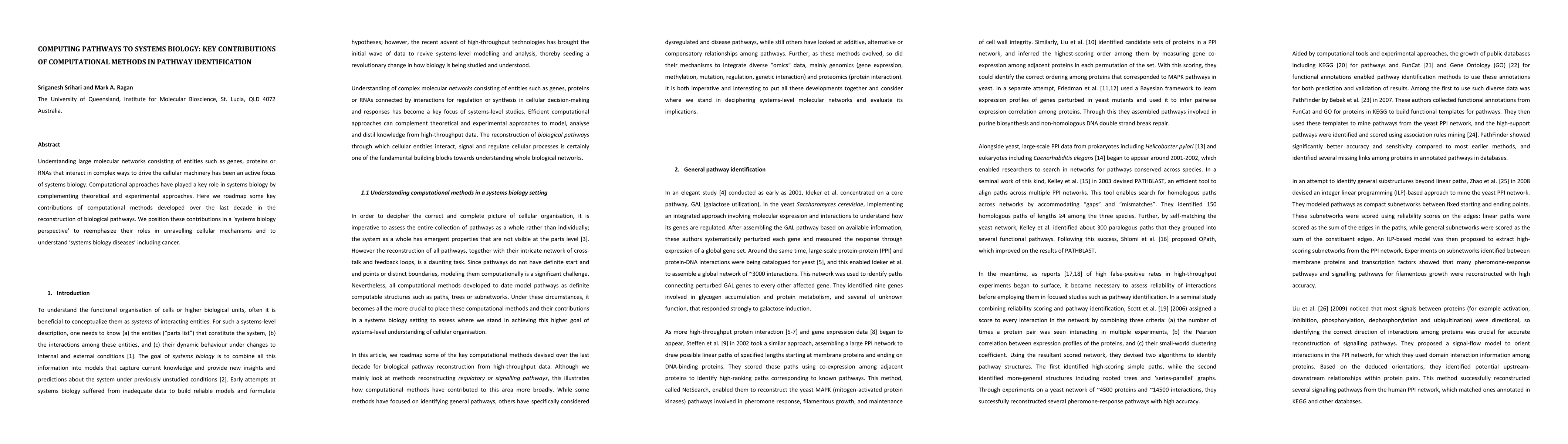 Understanding large molecular networks consisting of entities such as genes, proteins or RNAs that interact in complex ways to drive the cellular machinery has been an active focus of systems biology. Computational approaches have played a key role in systems biology by complementing theoretical and experimental approaches. Here we roadmap some key contributions of computational methods developed over the last decade in the reconstruction of biological pathways. We position these contributions in a 'systems biology perspective' to reemphasize their roles in unraveling cellular mechanisms and to understand 'systems biology diseases' including cancer.