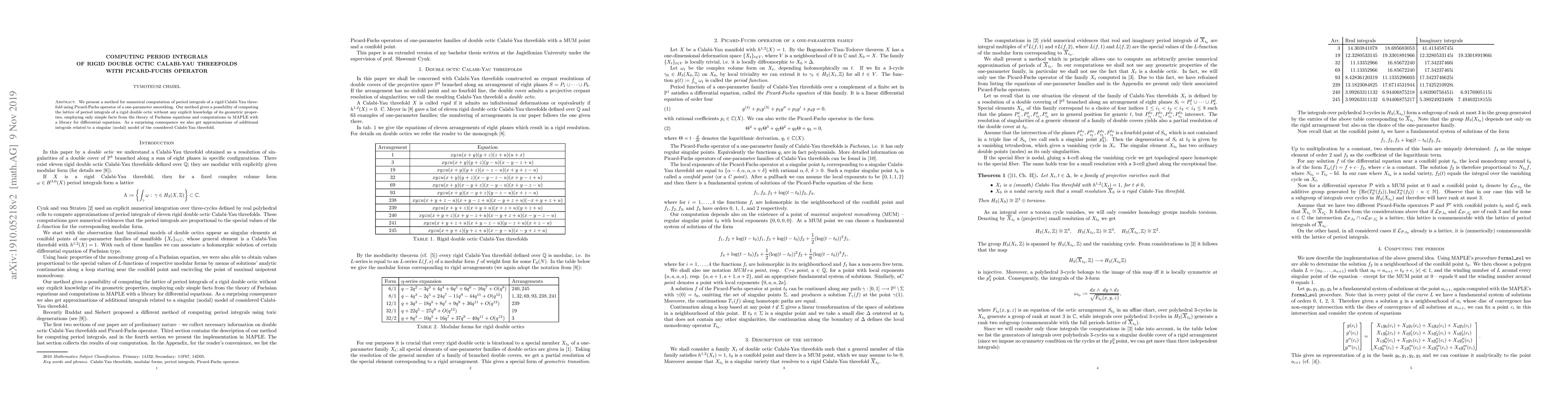 We present a method for numerical computation of period integrals of a rigid Calabi-Yau threefold using Picard-Fuchs operator of a one-parameter smoothing. Our method gives a possibility of computing the lattice of period integrals of a rigid double octic without any explicit knowledge of its geometric properties, employing only simple facts from the theory of Fuchsian equations and computations in MAPLE with a library for differential equations. As a surprising consequence we also get approximations of additional integrals related to a singular (nodal) model of considered Calabi-Yau threefold.