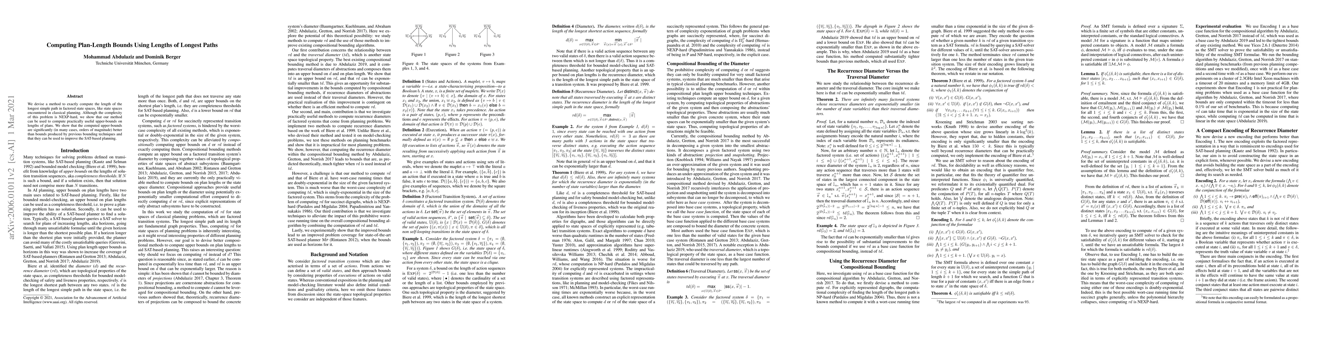 We devise a method to exactly compute the length of the longest simple path in factored state spaces, like state spaces encountered in classical planning. Although the complexity of this problem is NEXP-Hard, we show that our method can be used to compute practically useful upper-bounds on lengths of plans. We show that the computed upper-bounds are significantly (in many cases, orders of magnitude) better than bounds produced by previous bounding techniques and that they can be used to improve the SAT-based planning.