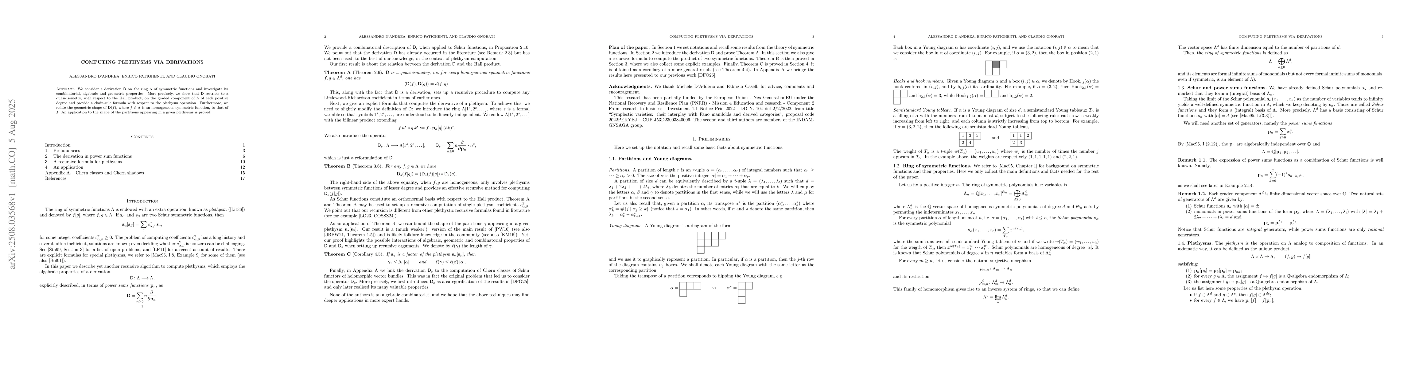 We consider a derivation D on the ring ${\Lambda}$ of symmetric functions and investigate its combinatorial, algebraic and geometric properties. More precisely, we show that D restricts to a quasi-isometry, with respect to the Hall product, on the graded component of ${\Lambda}$ of each positive degree and provide a chain-rule formula with respect to the plethysm operation. Furthermore, we relate the geometric shape of D(f), where f $\in {\Lambda}$ is an homogeneous symmetric function, to that of f. An application to the shape of the partitions appearing in a given plethysms is proved.