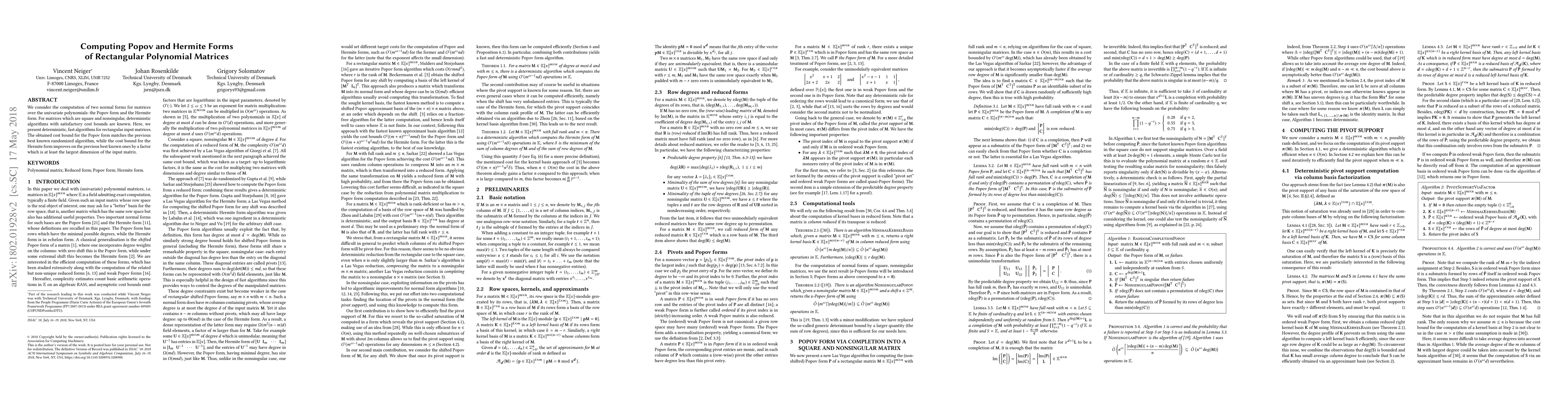 This paper presents deterministic algorithms for computing the Popov and Hermite forms of rectangular polynomial matrices, achieving cost bounds that match or improve upon previous randomized algorithms, particularly for the Hermite form.