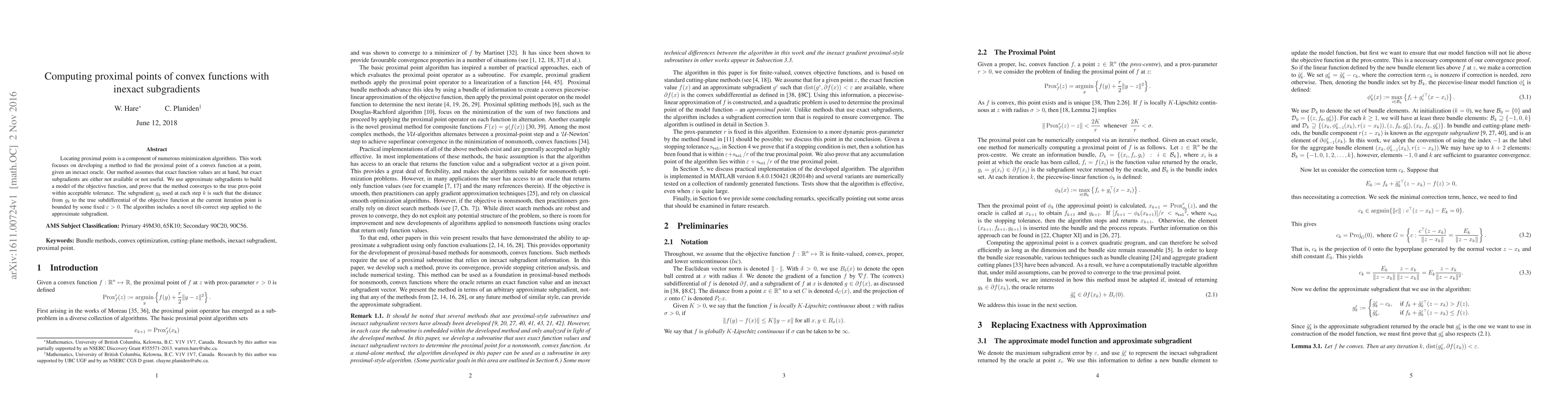 This paper proposes a method to compute proximal points of convex functions using inexact subgradients, leveraging approximate subgradients to model the objective function and ensuring convergence within a specified tolerance. The algorithm incorporates a novel tilt-correct step to enhance accuracy.