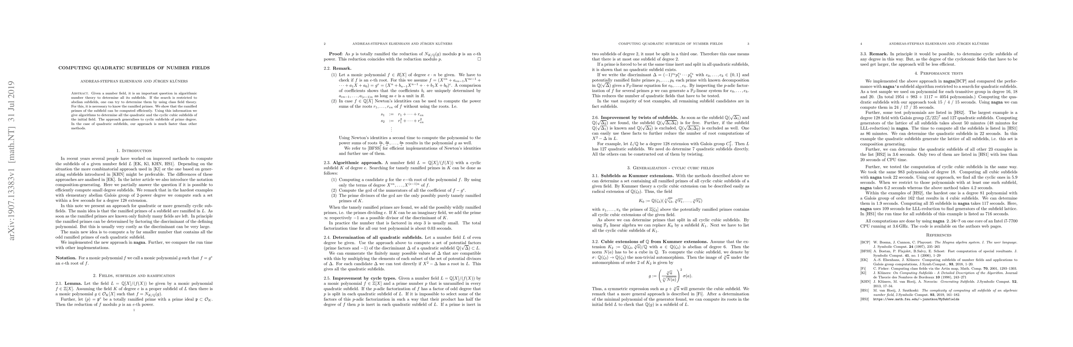 This paper presents efficient algorithms for computing quadratic and cyclic cubic subfields of a given number field, leveraging class field theory and the determination of ramified primes. The method is notably faster for quadratic subfields compared to existing techniques.