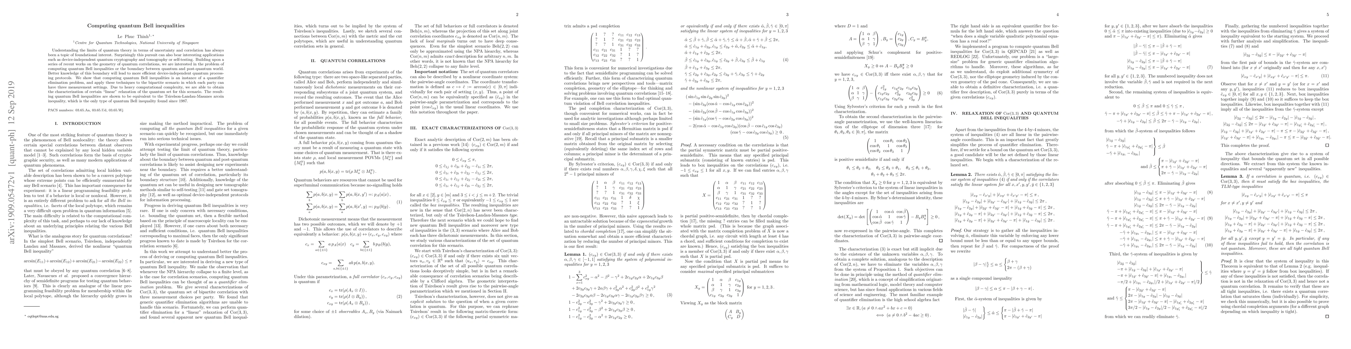 The paper demonstrates that computing quantum Bell inequalities can be formulated as a quantifier elimination problem, providing new insights into the geometry of quantum correlations.