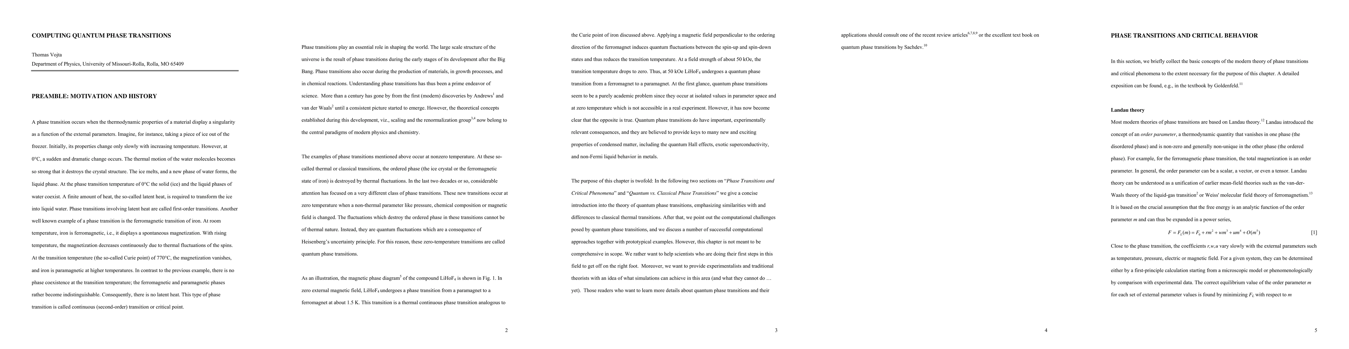 Researchers discuss successful computational approaches to study quantum phase transitions in clean and disordered systems using classical and quantum Monte Carlo methods.