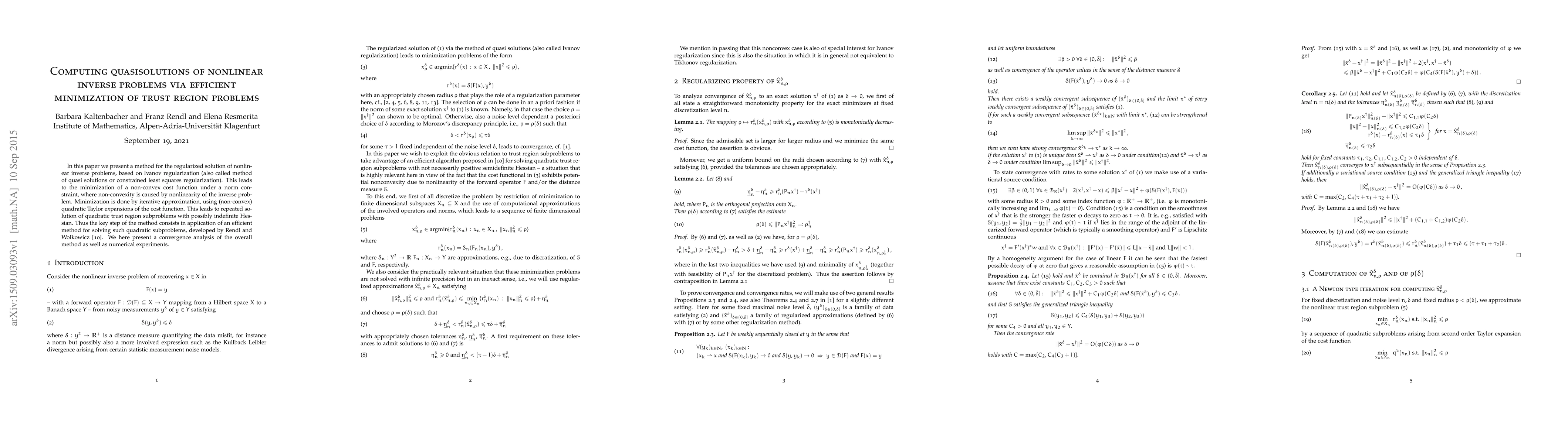This paper proposes a method for solving nonlinear inverse problems using Ivanov regularization, which involves minimizing a non-convex cost function via iterative approximation and quadratic Taylor expansions. The method relies on efficiently solving quadratic trust region subproblems, and includes a convergence analysis and numerical experiments.