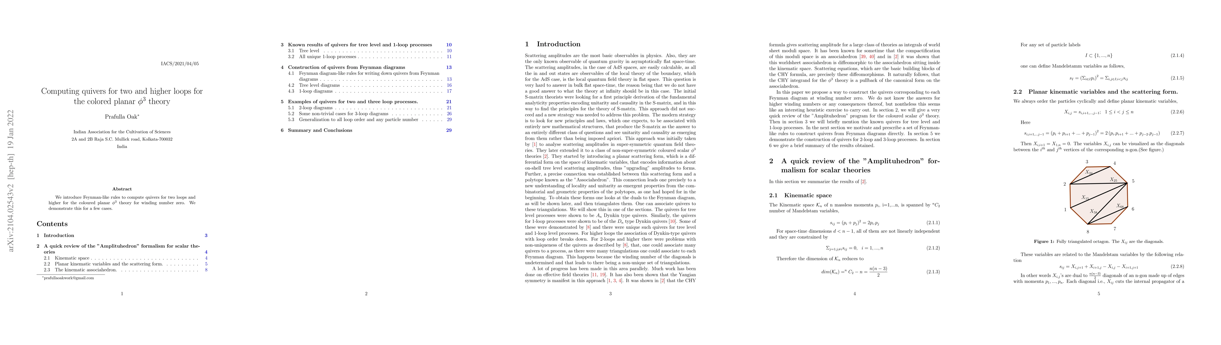 Researchers introduced rules to compute quivers for loops in the colored planar φ^3 theory, enabling calculations for two loops and higher, with initial results demonstrated for specific cases.