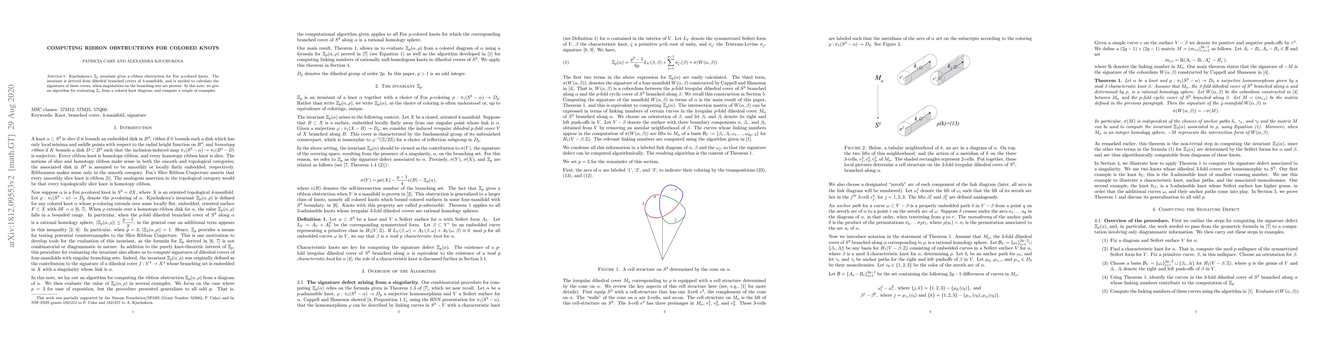 Kjuchukova's $\Xi_p$ invariant gives a ribbon obstruction for Fox $p$-colored knots. The invariant is derived from dihedral branched covers of 4-manifolds, and is needed to calculate the signatures of these covers, when singularities on the branching sets are present. In this note, we give an algorithm for evaluating $\Xi_p$ from a colored knot diagram, and compute a couple of examples.