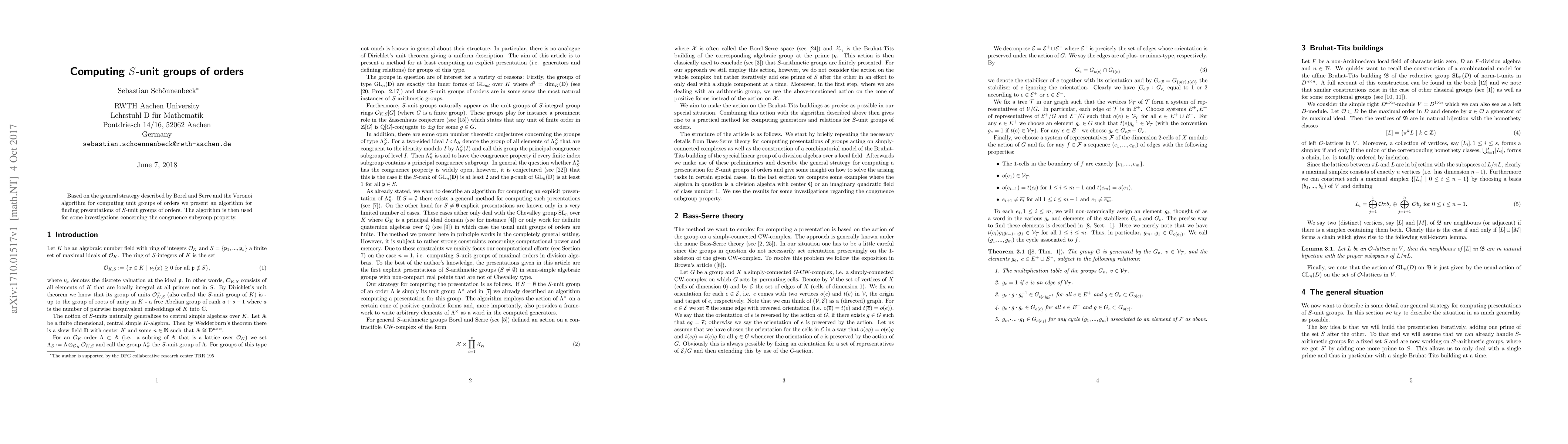 Based on the general strategy described by Borel and Serre and the Voronoi algorithm for computing unit groups of orders we present an algorithm for finding presentations of $S$-unit groups of orders. The algorithm is then used for some investigations concerning the congruence subgroup property.