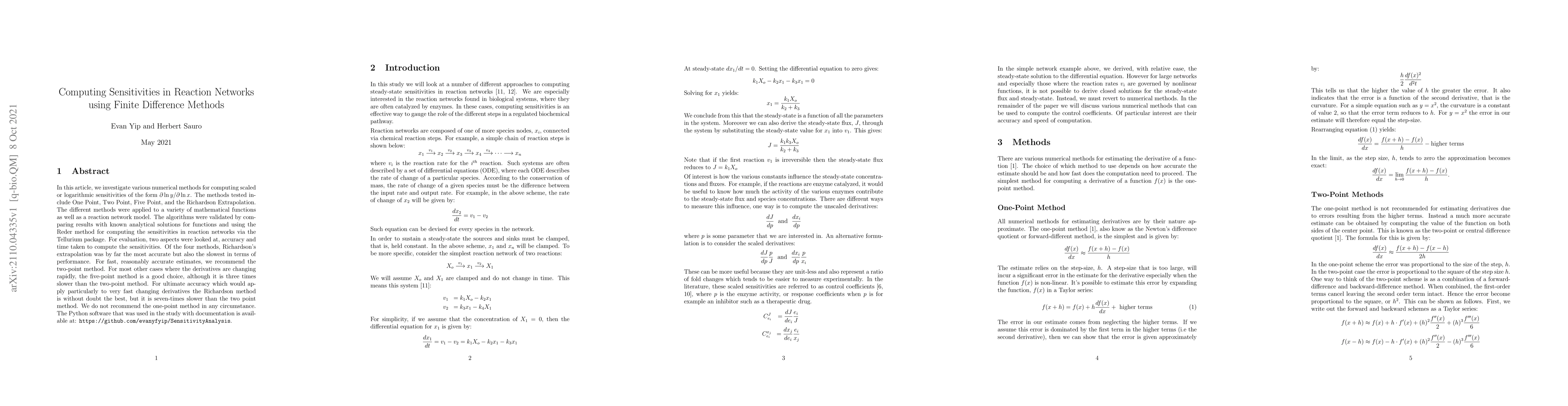 In this article, we investigate various numerical methods for computing scaled or logarithmic sensitivities of the form $\partial \ln y/\partial \ln x$. The methods tested include One Point, Two Point, Five Point, and the Richardson Extrapolation. The different methods were applied to a variety of mathematical functions as well as a reaction network model. The algorithms were validated by comparing results with known analytical solutions for functions and using the Reder method for computing the sensitivities in reaction networks via the Tellurium package. For evaluation, two aspects were looked at, accuracy and time taken to compute the sensitivities. Of the four methods, Richardson's extrapolation was by far the most accurate but also the slowest in terms of performance. For fast, reasonably accurate estimates, we recommend the two-point method. For most other cases where the derivatives are changing rapidly, the five-point method is a good choice, although it is three times slower than the two-point method. For ultimate accuracy which would apply particularly to very fast changing derivatives the Richardson method is without doubt the best, but it is seven-times slower than the two point method. We do not recommend the one-point method in any circumstance. The Python software that was used in the study with documentation is available at: \url{https://github.com/evanyfyip/SensitivityAnalysis}.