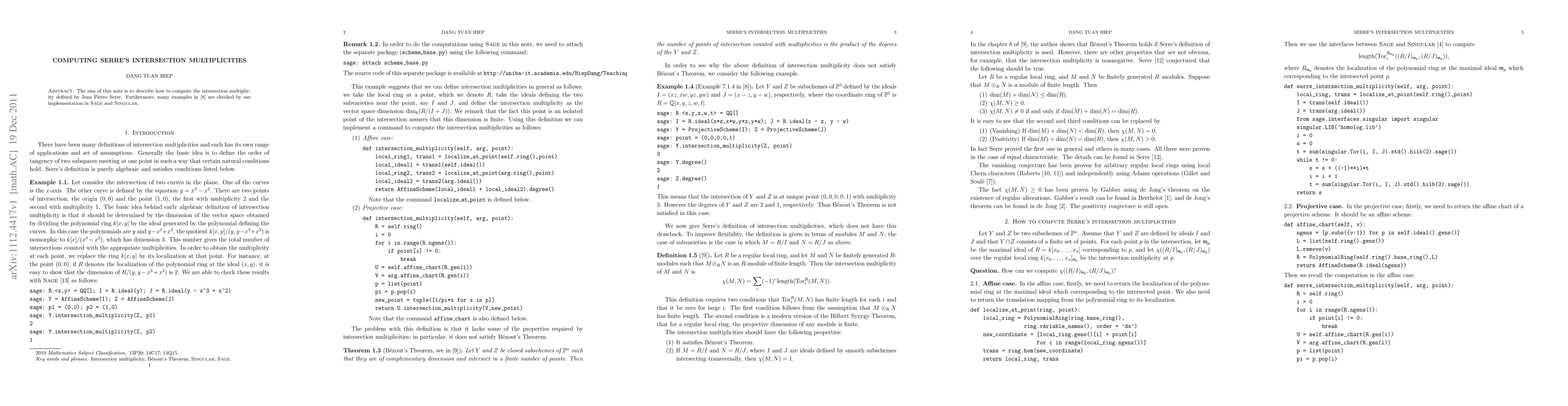 This paper describes a method to compute Serre's intersection multiplicities, a concept in algebraic geometry that helps analyze the intersections of geometric objects.