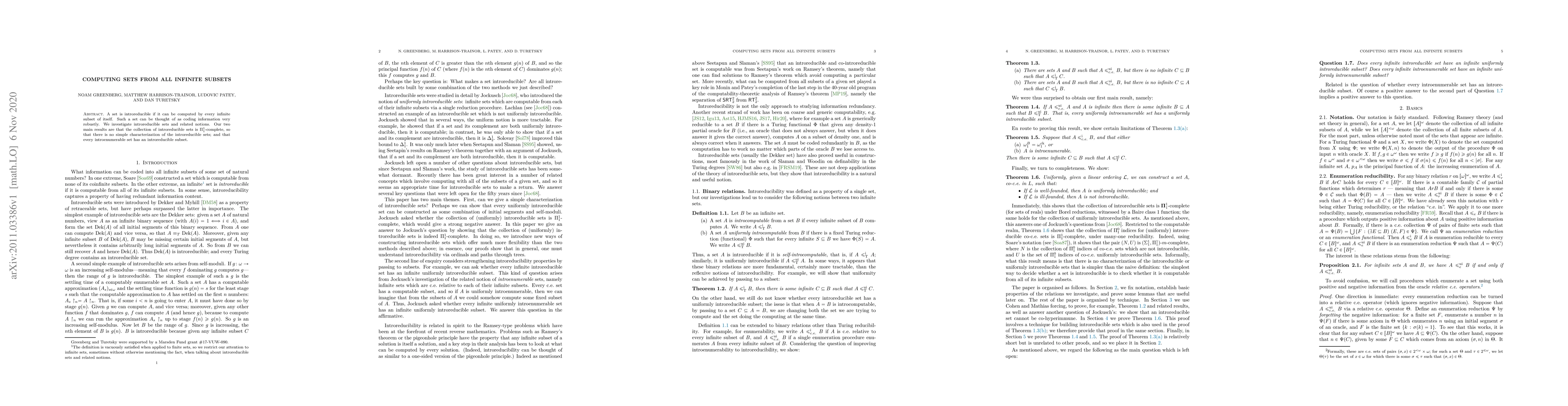 A set is introreducible if it can be computed by every infinite subset of itself. Such a set can be thought of as coding information very robustly. We investigate introreducible sets and related notions. Our two main results are that the collection of introreducible sets is $\Pi^1_1$-complete, so that there is no simple characterization of the introreducible sets; and that every introenumerable set has an introreducible subset.