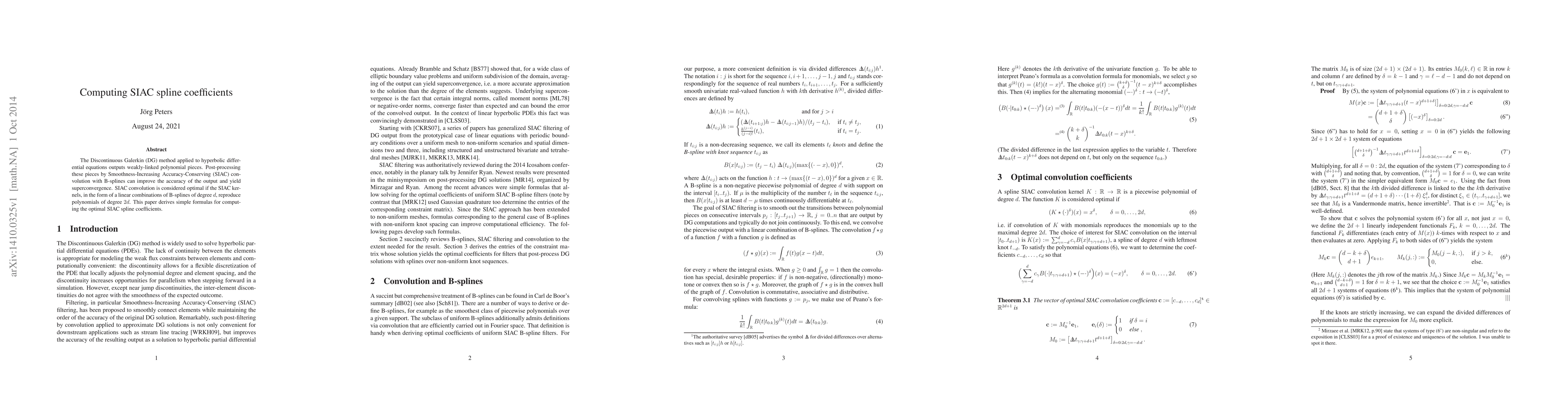 The Discontinuous Galerkin (DG) method applied to hyperbolic differential equations outputs weakly-linked polynomial pieces. Post-processing these pieces by Smoothness-Increasing Accuracy-Conserving (SIAC) convolution with B-splines can improve the accuracy of the output and yield superconvergence. SIAC convolution is considered optimal if the SIAC kernels, in the form of a linear combinations of B-splines of degree d, reproduce polynomials of degree 2d. This paper derives simple formulas for computing the optimal SIAC spline coefficients.