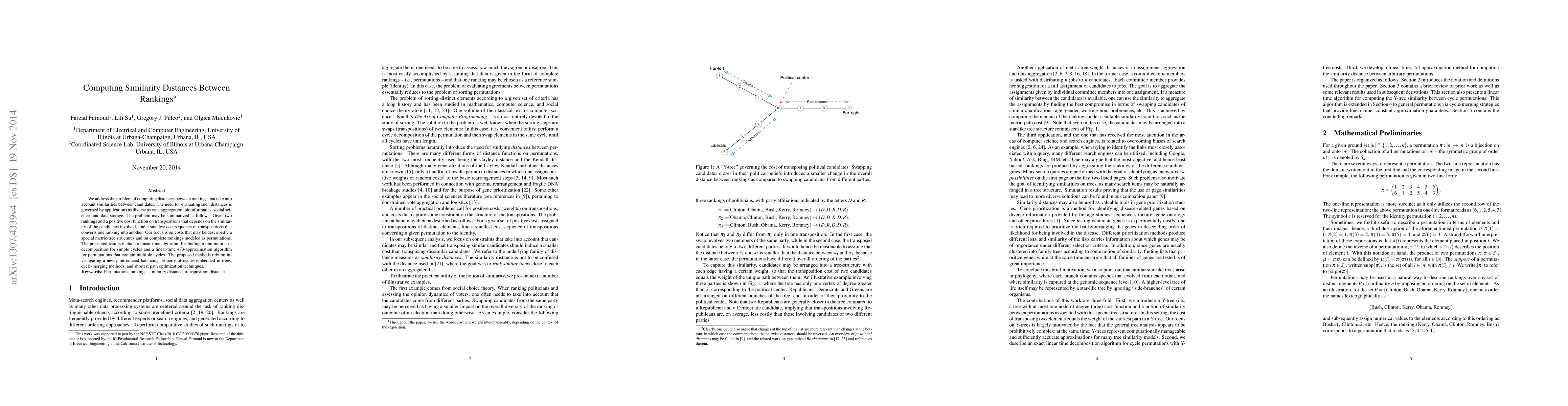 This paper presents algorithms to calculate distances between rankings that consider similarities between candidates, applicable in fields like data storage and bioinformatics.