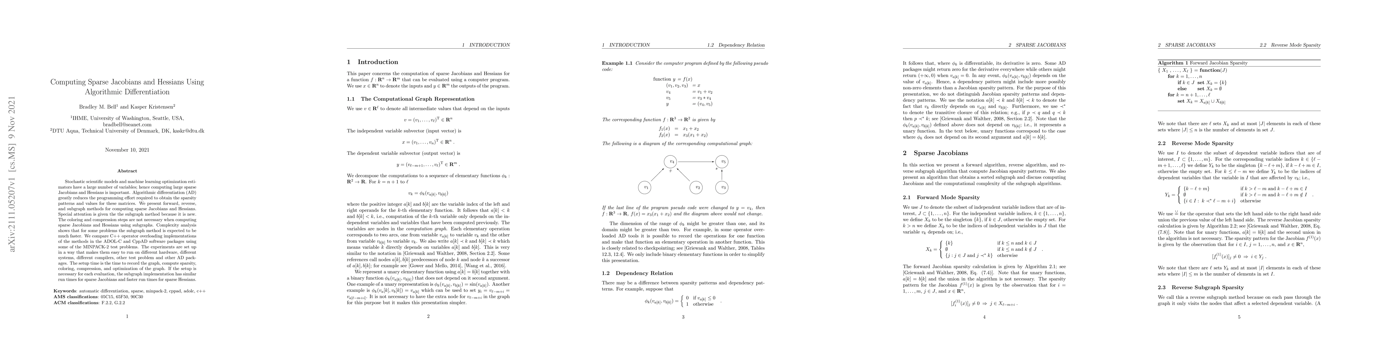 This paper presents methods for computing sparse Jacobians and Hessians using algorithmic differentiation, focusing on forward, reverse, and a new subgraph method. The subgraph method eliminates the need for coloring and compression, potentially leading to faster computation times for certain problems.