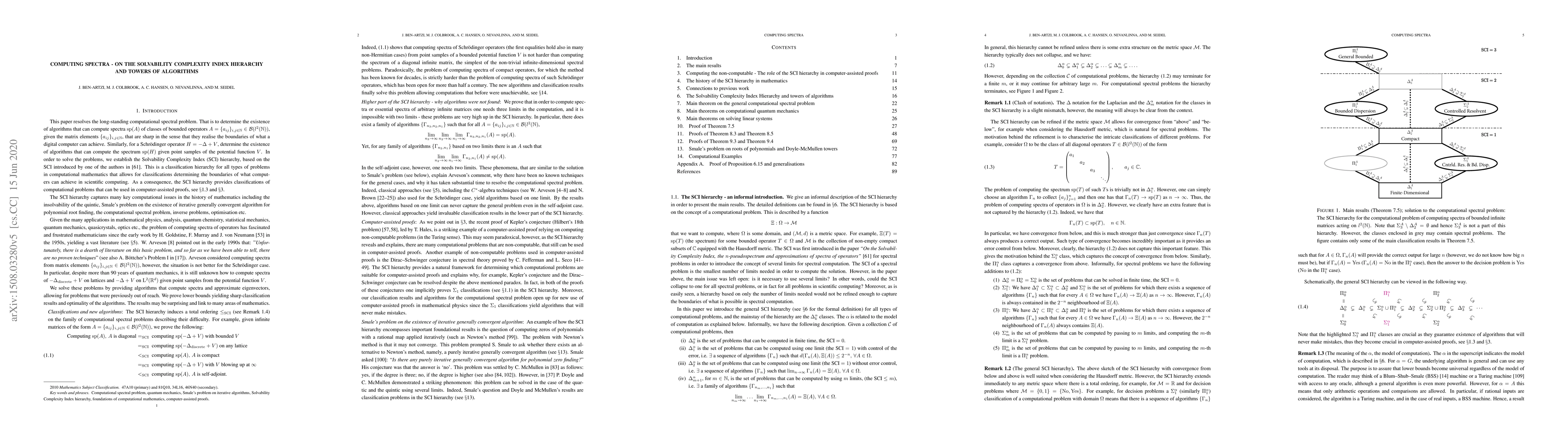 This paper resolves the computational spectral problem by establishing the Solvability Complexity Index (SCI) hierarchy, which classifies algorithms based on the number of limits needed to compute spectra of bounded operators and Schrödinger operators. This framework delineates the boundaries of computational capabilities in scientific computing and provides new algorithms for previously intractable problems.
