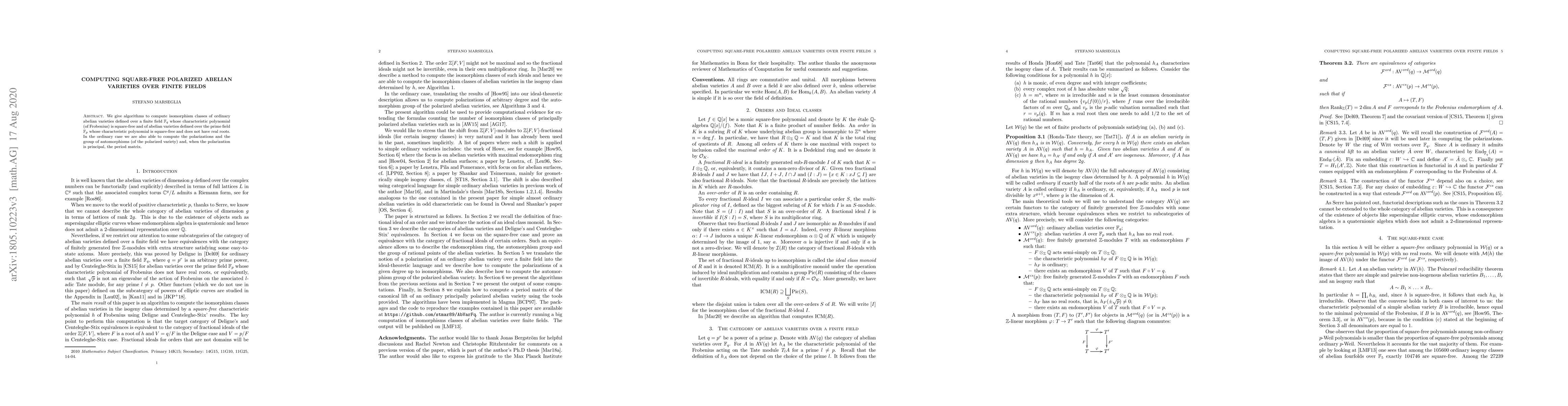 This paper presents algorithms for determining isomorphism classes of square-free polarized ordinary abelian varieties over finite fields, including computations of their characteristic polynomials, polarizations, automorphism groups, and period matrices when applicable. The focus is on both $\mathbb{F}_q$ and $\mathbb{F}_p$ fields.