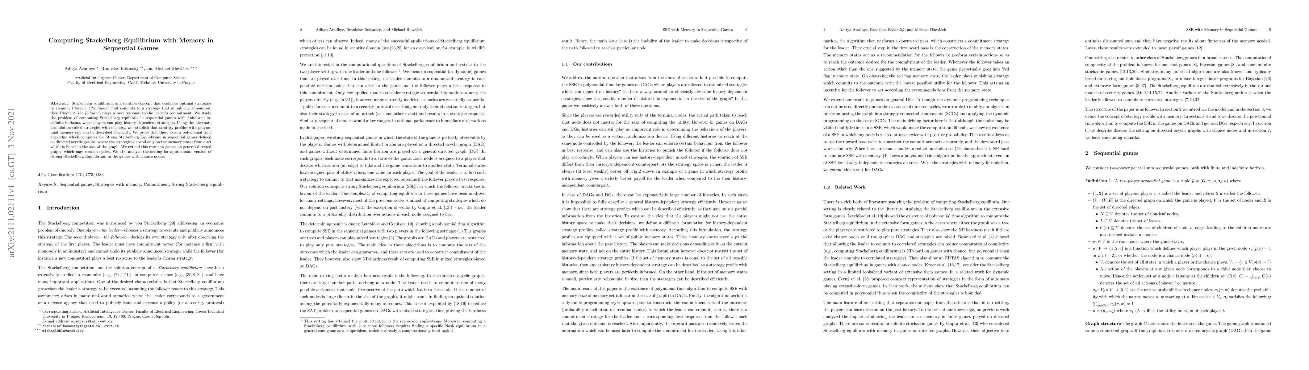 This paper investigates the computation of Stackelberg equilibria in sequential games with memory-based strategies. It presents a polynomial time algorithm for computing Strong Stackelberg Equilibrium in directed acyclic graphs and extends this to general directed graphs, while also exploring approximate equilibria in games with chance nodes.