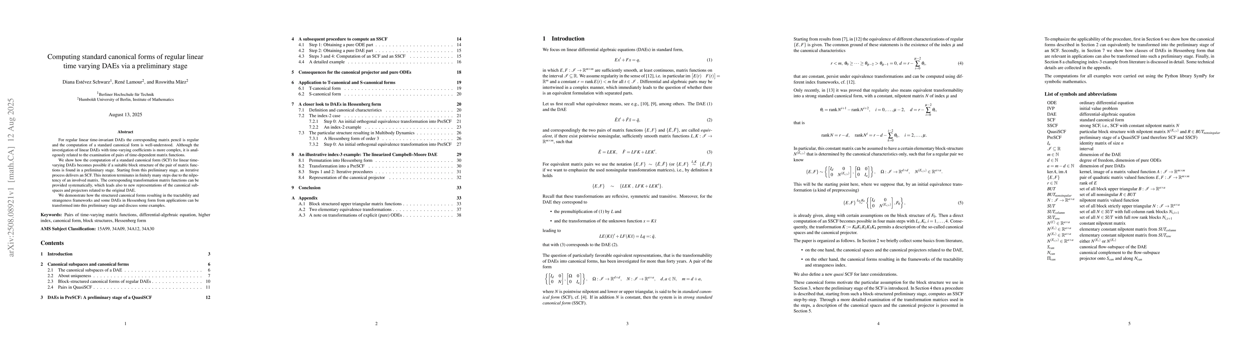 For regular linear time-invariant DAEs the corresponding matrix pencil is regular and the computation of a standard canonical form is well-understood. Although the investigation of linear DAEs with time-varying coefficients is more complex, it is analogously related to the examination of pairs of time-dependent matrix functions. We show how the computation of a standard canonical form (SCF) for linear time-varying DAEs becomes possible if a suitable block structure of the pair of matrix functions is found in a preliminary stage. Starting from this preliminary stage, an iterative process delivers an SCF. This iteration terminates in finitely many steps due to the nilpotency of an involved matrix. The corresponding transformation matrix functions can be provided systematically, which leads also to new representations of the canonical subspaces and projectors related to the original DAE. We demonstrate how the structured canonical forms resulting in the tractability and strangeness frameworks and some DAEs in Hessenberg form from applications can be transformed into this preliminary stage and discuss some examples.
