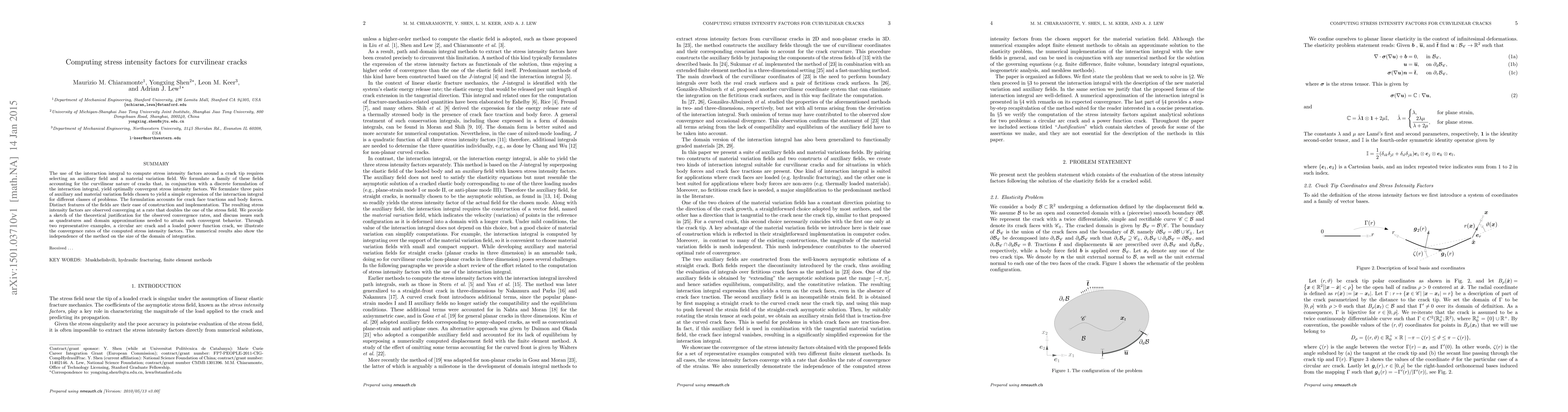 This research paper develops a method to compute stress intensity factors for curvilinear cracks, showing that it converges at twice the rate of the stress field, with applications to circular arc and power function cracks.