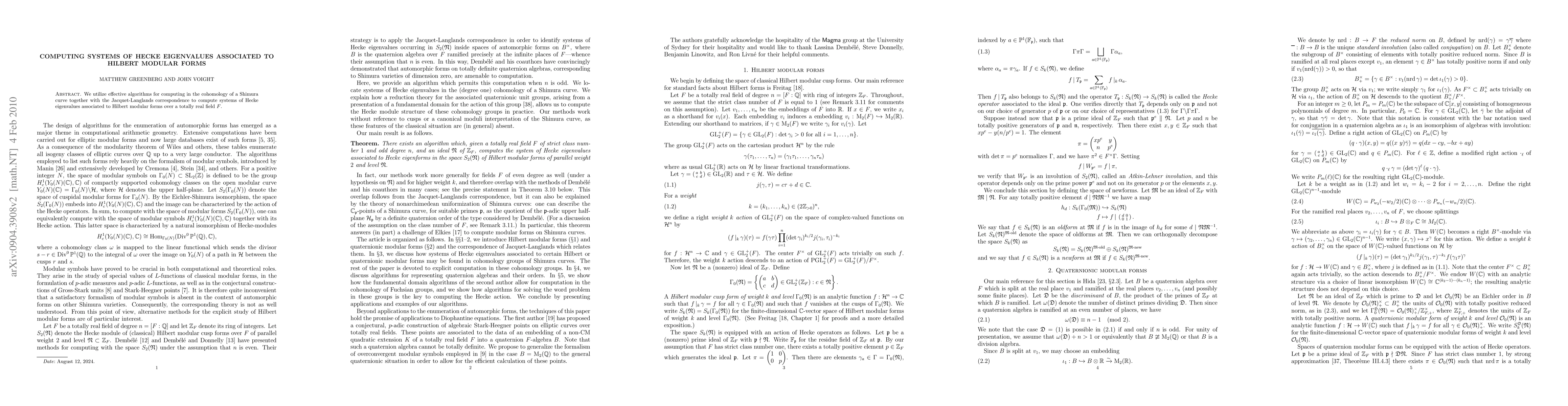 Summary: This paper presents effective algorithms for calculating systems of Hecke eigenvalues linked to Hilbert modular forms over a totally real field, leveraging cohomology computations on Shimura curves and the Jacquet-Langlands correspondence.