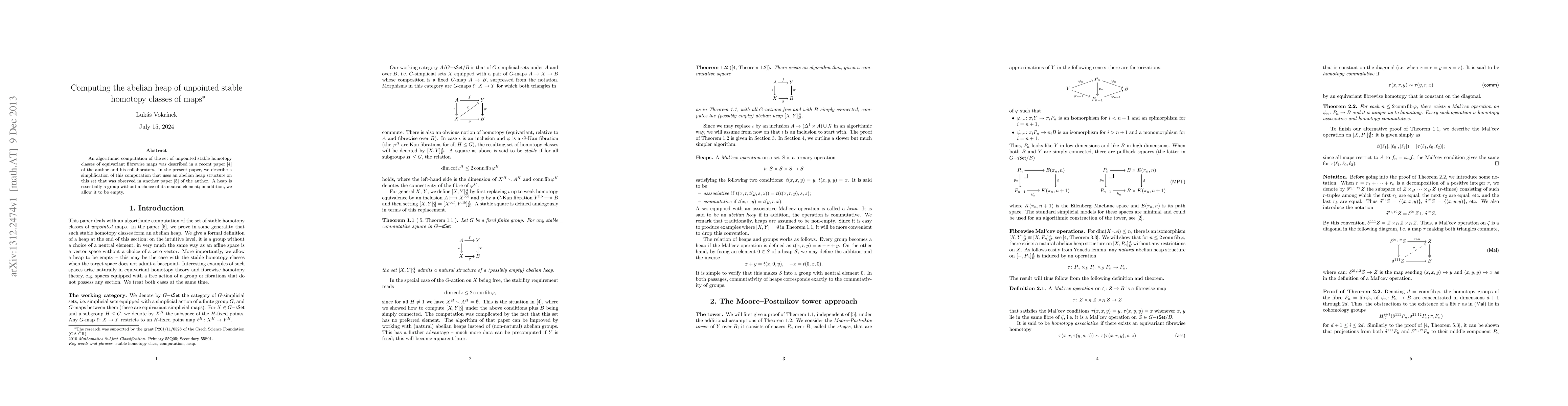 An algorithmic computation of the set of unpointed stable homotopy classes of equivariant fibrewise maps was described in a recent paper of the author and his collaborators. In the present paper, we describe a simplification of this computation that uses an abelian heap structure on this set that was observed in another paper of the author. A heap is essentially a group without a choice of its neutral element; in addition, we allow it to be empty.