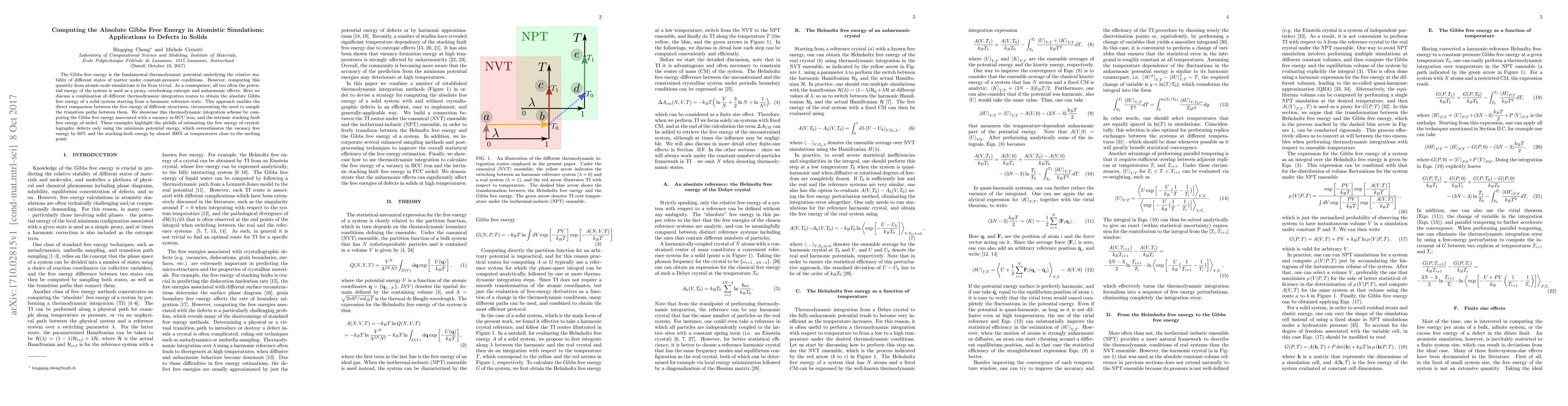 This paper presents a method for computing the absolute Gibbs free energy from atomistic simulations, using thermodynamic integration to account for entropic and anharmonic effects. It demonstrates the application of this method to calculate the free energy of defects in BCC iron and nickel, showing significant discrepancies when compared to potential energy estimates.
