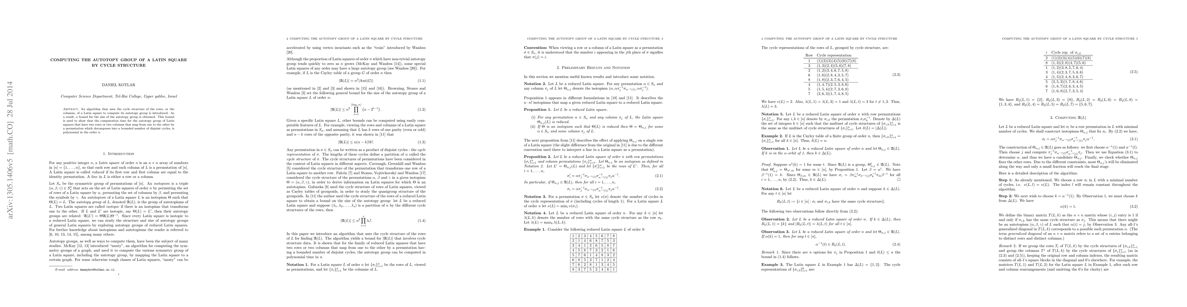 A new algorithm uses cycle structure to compute autotopy group of Latin squares, obtaining a polynomial bound for computation time when rows/columns map via disjoint cycles.