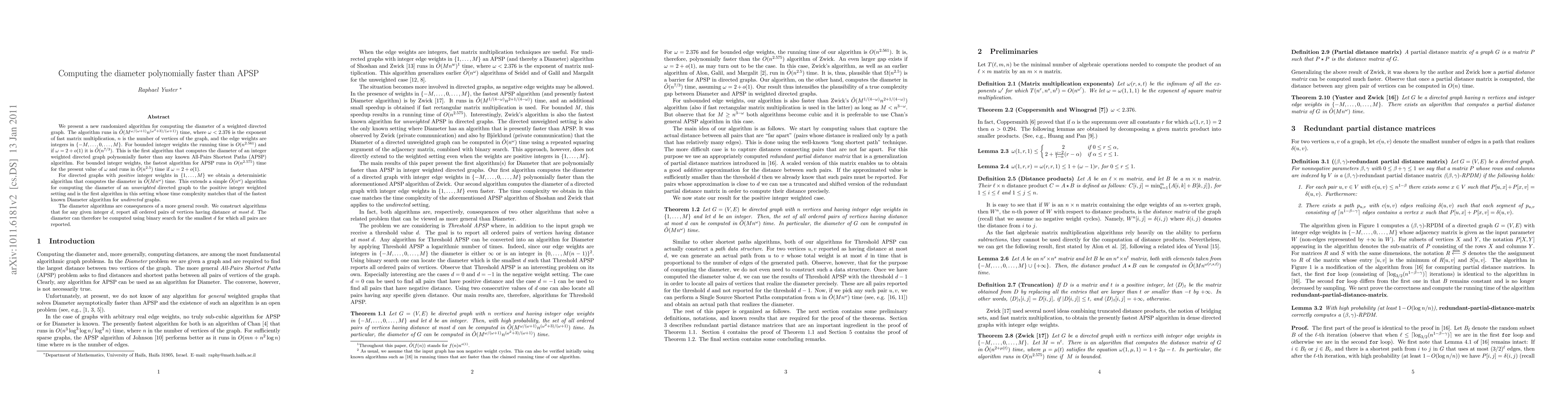 We present a new randomized algorithm for computing the diameter of a weighted directed graph. The algorithm runs in $\Ot(M^{\w/(\w+1)}n^{(\w^2+3)/(\w+1)})$ time, where $\w < 2.376$ is the exponent of fast matrix multiplication, $n$ is the number of vertices of the graph, and the edge weights are integers in $\{-M,...,0,...,M\}$. For bounded integer weights the running time is $O(n^{2.561})$ and if $\w=2+o(1)$ it is $\Ot(n^{7/3})$. This is the first algorithm that computes the diameter of an integer weighted directed graph polynomially faster than any known All-Pairs Shortest Paths (APSP) algorithm. For bounded integer weights, the fastest algorithm for APSP runs in $O(n^{2.575})$ time for the present value of $\w$ and runs in $\Ot(n^{2.5})$ time if $\w=2+o(1)$. For directed graphs with {\em positive} integer weights in $\{1,...,M\}$ we obtain a deterministic algorithm that computes the diameter in $\Ot(Mn^\w)$ time. This extends a simple $\Ot(n^\w)$ algorithm for computing the diameter of an {\em unweighted} directed graph to the positive integer weighted setting and is the first algorithm in this setting whose time complexity matches that of the fastest known Diameter algorithm for {\em undirected} graphs. The diameter algorithms are consequences of a more general result. We construct algorithms that for any given integer $d$, report all ordered pairs of vertices having distance {\em at most} $d$. The diameter can therefore be computed using binary search for the smallest $d$ for which all pairs are reported.