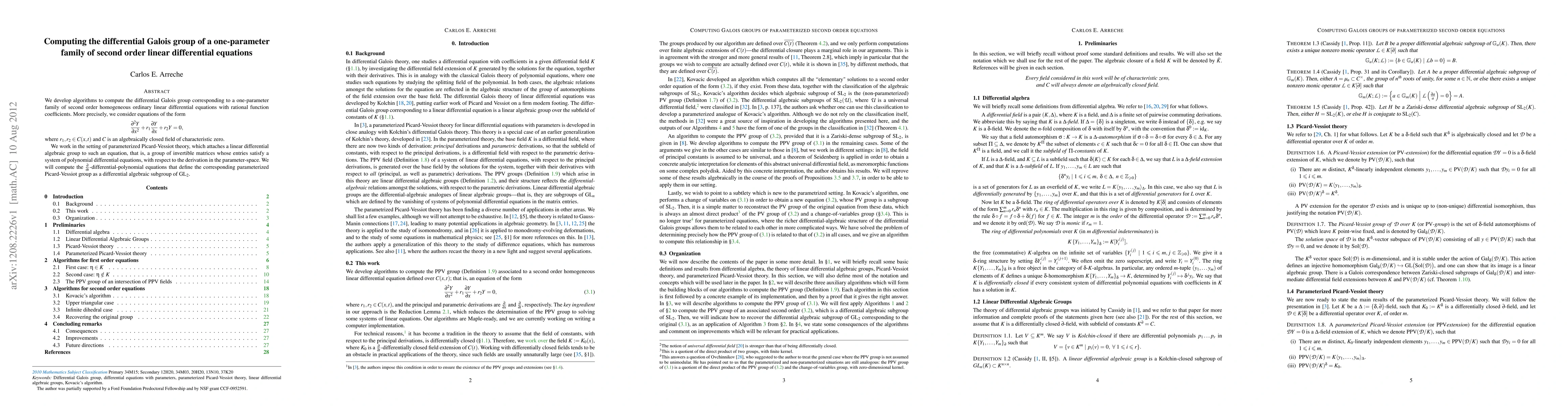 This paper develops algorithms to compute the differential Galois group for a one-parameter family of second-order linear differential equations with rational function coefficients. It utilizes parameterized Picard-Vessiot theory to determine the differential-polynomial equations defining the corresponding differential algebraic group.
