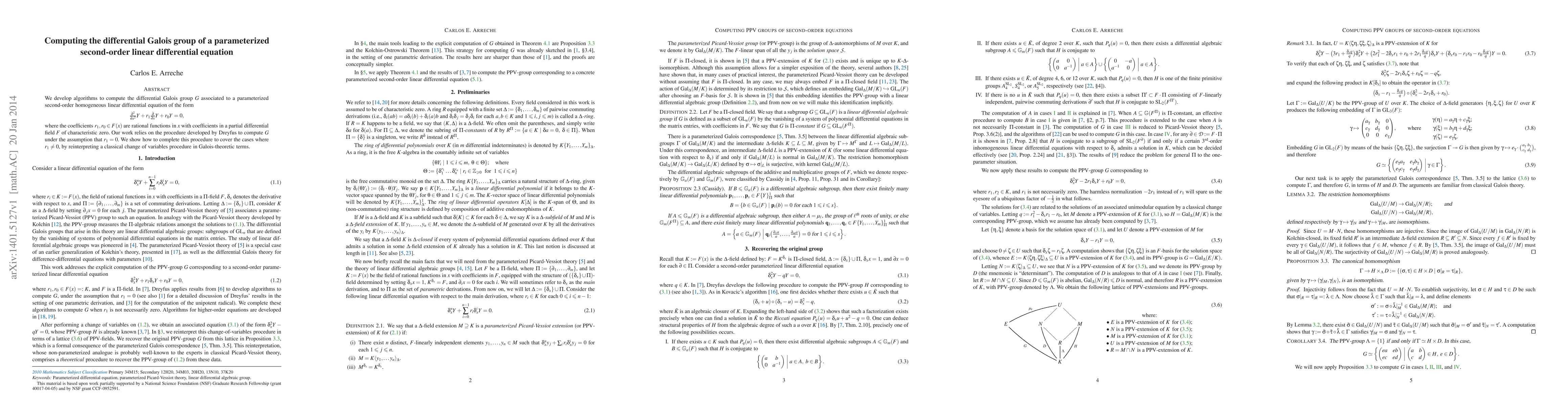 This paper develops algorithms to compute the differential Galois group $G$ for parameterized second-order linear differential equations, extending Dreyfus's method to handle non-zero first-order coefficients. It reinterprets classical change of variables in Galois-theoretic terms to achieve this.