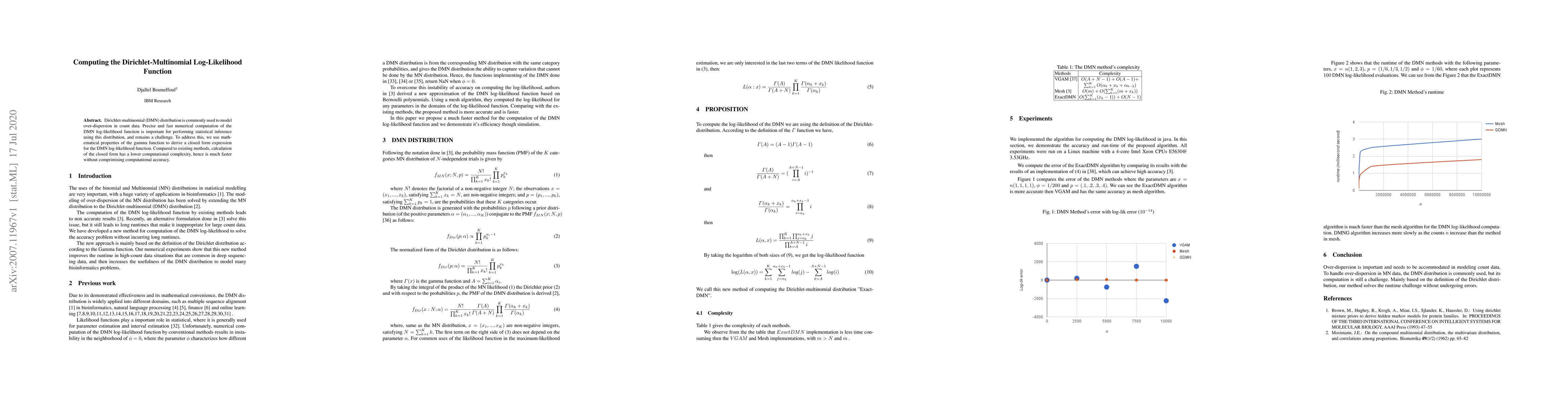 This paper develops a closed-form expression for the Dirichlet-multinomial log-likelihood function, significantly improving computational speed without compromising accuracy.