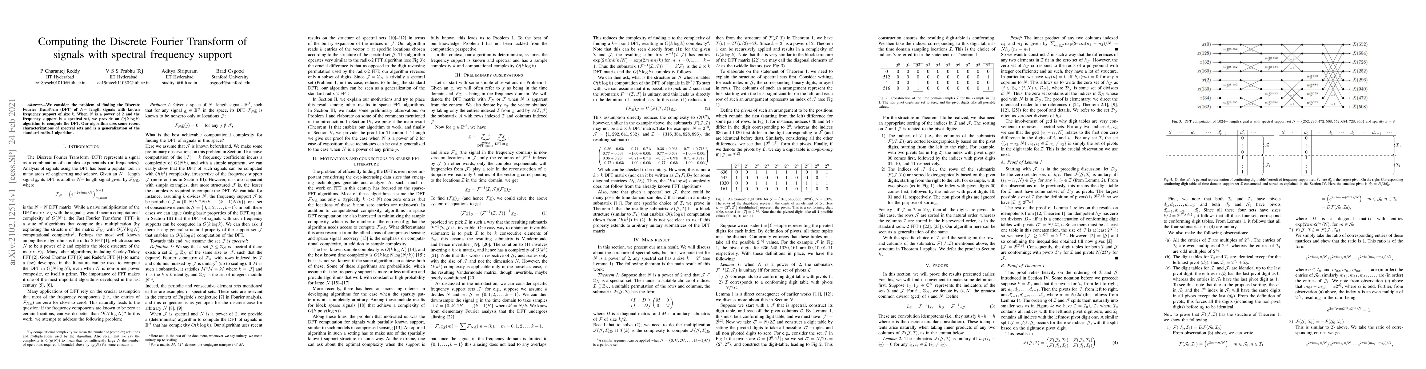 We consider the problem of finding the Discrete Fourier Transform (DFT) of $N-$ length signals with known frequency support of size $k$. When $N$ is a power of 2 and the frequency support is a spectral set, we provide an $O(k \log k)$ algorithm to compute the DFT. Our algorithm uses some recent characterizations of spectral sets and is a generalization of the standard radix-2 algorithm.