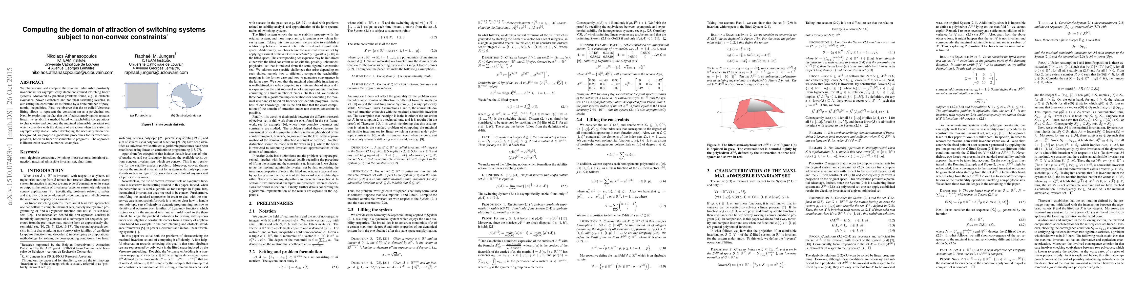 Researchers developed a method to compute the domain of attraction for asymptotically stable constrained switching systems with polynomial inequalities, using reachability computations and linear or semidefinite programs.
