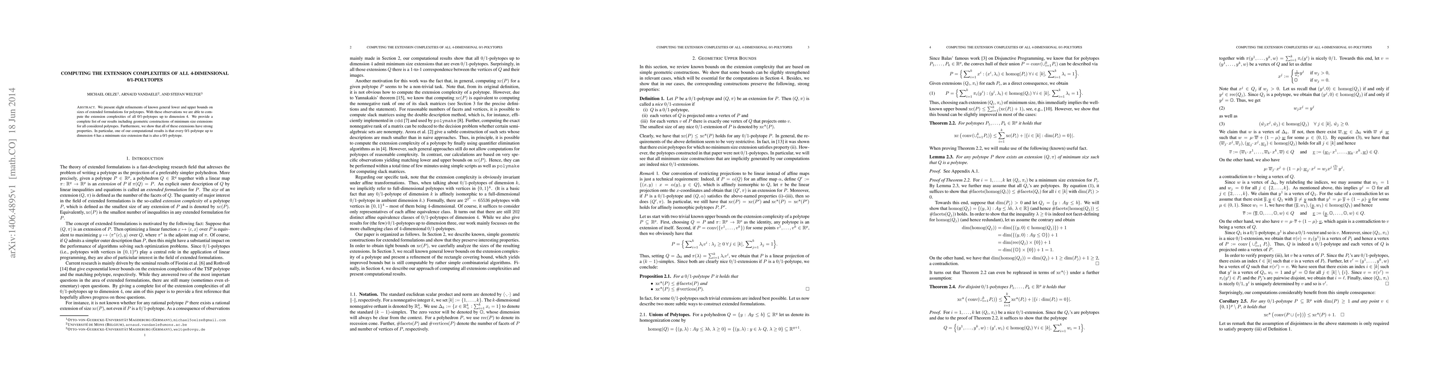 This paper refines bounds on extended formulations for 0/1-polytopes, enabling the computation of their extension complexities up to dimension 4. It provides geometric constructions of minimum size extensions, revealing that all such extensions are also 0/1-polytopes.