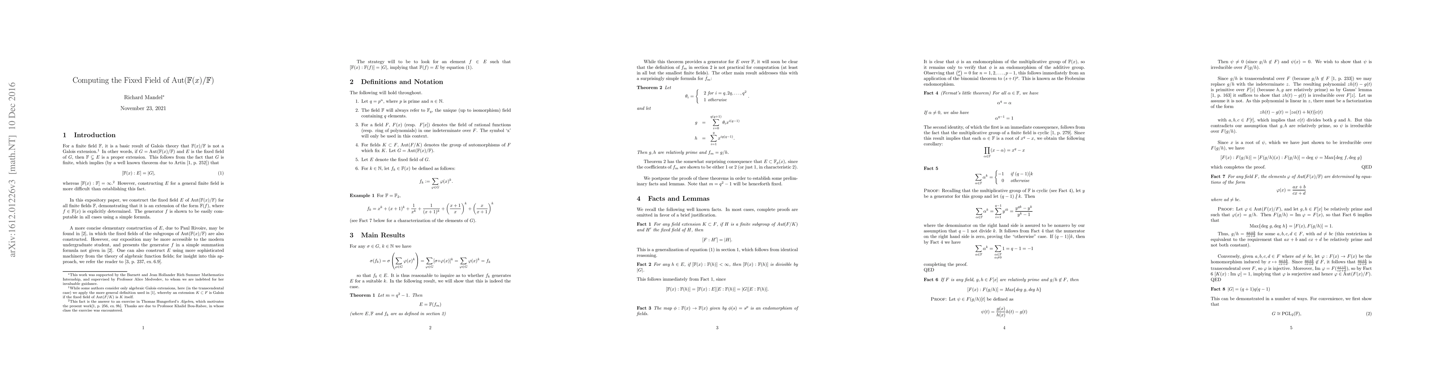 Researchers developed a method to easily compute an element in a finite field that generates its fixed field under the automorphism group, providing a fundamental result for Galois theory.
