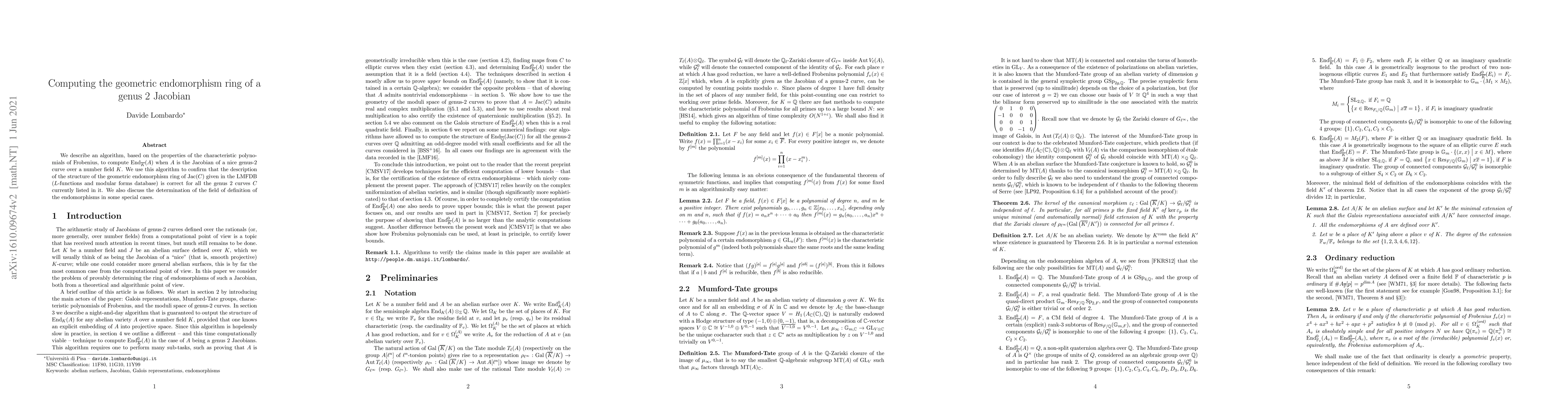 We describe an algorithm, based on the properties of the characteristic polynomials of Frobenius, to compute $\operatorname{End}_{\overline{K}}(A)$ when $A$ is the Jacobian of a nice genus-2 curve over a number field $K$. We use this algorithm to confirm that the description of the structure of the geometric endomorphism ring of $\operatorname{Jac}(C)$ given in the LMFDB ($L$-functions and modular forms database) is correct for all the genus 2 curves $C$ currently listed in it. We also discuss the determination of the field of definition of the endomorphisms in some special cases.