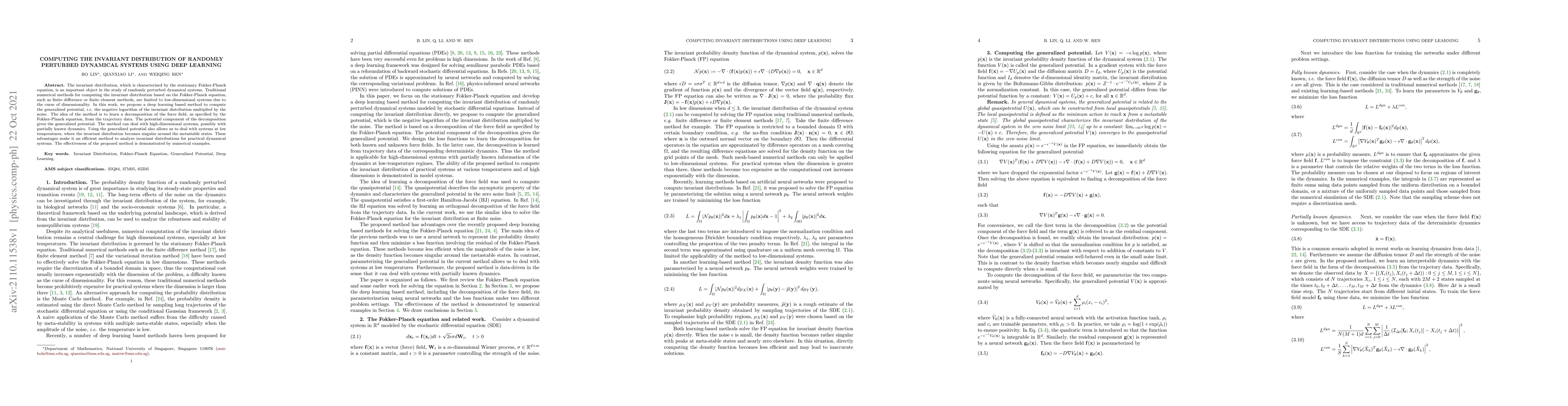 The invariant distribution, which is characterized by the stationary Fokker-Planck equation, is an important object in the study of randomly perturbed dynamical systems. Traditional numerical methods for computing the invariant distribution based on the Fokker-Planck equation, such as finite difference or finite element methods, are limited to low-dimensional systems due to the curse of dimensionality. In this work, we propose a deep learning based method to compute the generalized potential, i.e. the negative logarithm of the invariant distribution multiplied by the noise. The idea of the method is to learn a decomposition of the force field, as specified by the Fokker-Planck equation, from the trajectory data. The potential component of the decomposition gives the generalized potential. The method can deal with high-dimensional systems, possibly with partially known dynamics. Using the generalized potential also allows us to deal with systems at low temperatures, where the invariant distribution becomes singular around the metastable states. These advantages make it an efficient method to analyze invariant distributions for practical dynamical systems. The effectiveness of the proposed method is demonstrated by numerical examples.